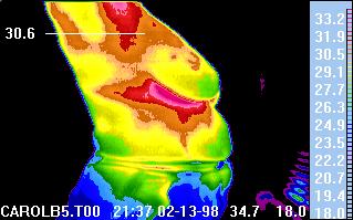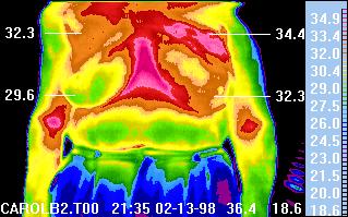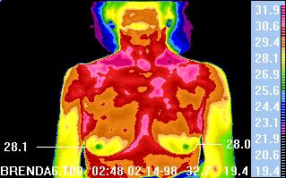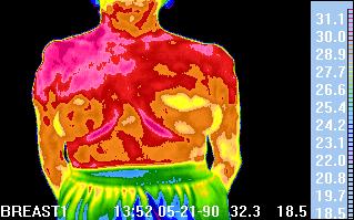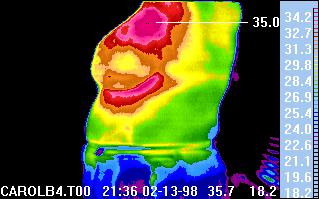 in above series. Cooler thermal zone in the nipple region. Fairly even