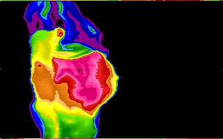Any number of colors from 4-256 should be easily applied to the image using a simple sliding scale. In comparison with the image above, the same image is viewed below with less colors. Broad areas are defined, but more discreet thermal zones of interest are not depicted. Therefore, for interpretation, it is important to have flexibility with the number of colors on the scale.
